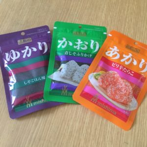 Posted on 2018年10月18日2018年10月28日 by カッチン。 ゆかり3姉妹【気になるお買い物シリーズ】 SNSで話題になった商品や、 期間限定商品が大好きな隠れミーハーな私(笑) 【気になるお買い物シリーズ】第1回は… ゆかり3姉妹 ですw [購入店:ダイソー] しそごはん用の「ゆかり」 青じそふりかけ「かおり」 ピリ辛たらこの「あかり」 やっと3つ揃ってゲットできました♪